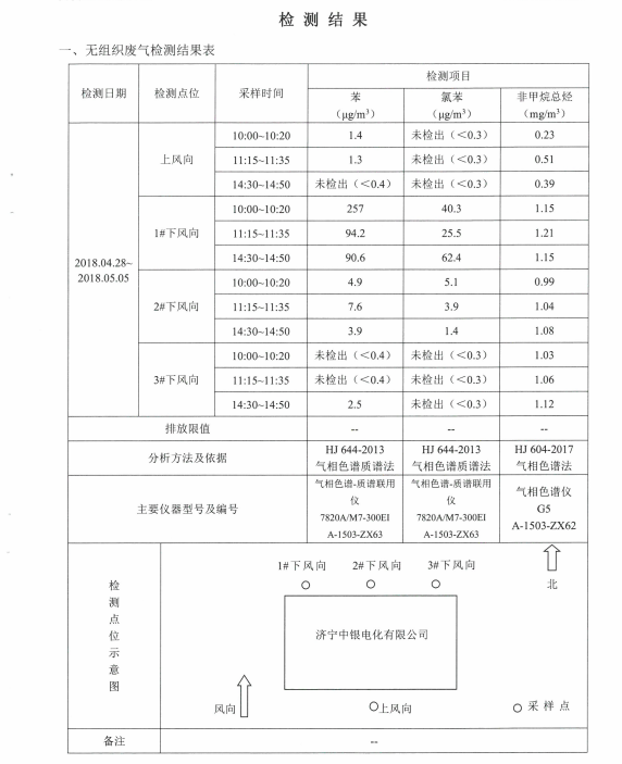 公司2018年4月26日委托山东嘉源检测技术公司对vocs进行了检测,检测结果如下图:……